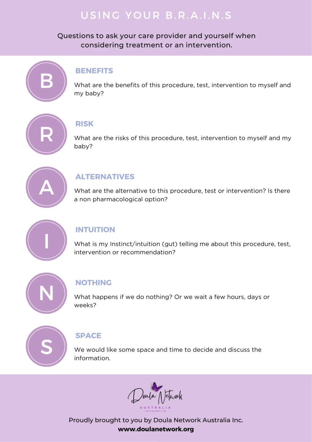 ExclusiveĀ DNA B.R.A.I.N.SĀ Sheet, for doulas to useĀ during Doula Prenatal session or as a bonus handout for clients.